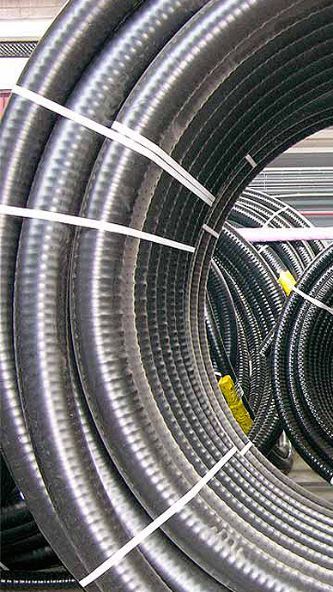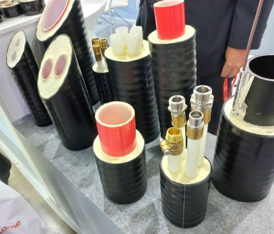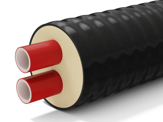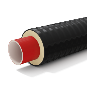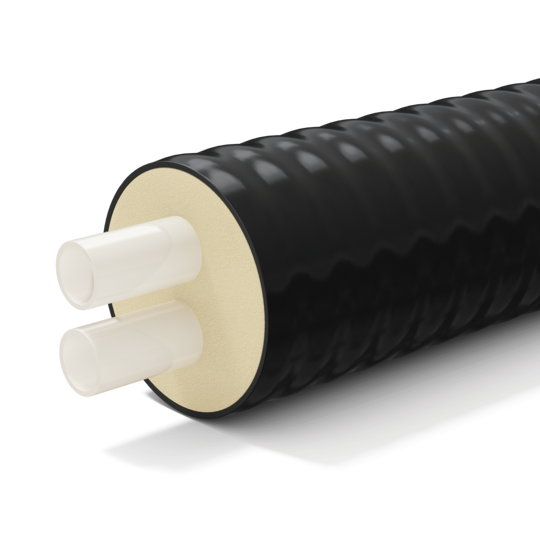 Гибкий трубопровод в двухтрубном исполнении, пенополиуретановой изоляции. Давление P = 6 бар (SDR 11 или P = 10 бар (SDR 7,4) для тепловых сетей с температурным графиком 95/70 °С (пиковая температура t = 110°С).
